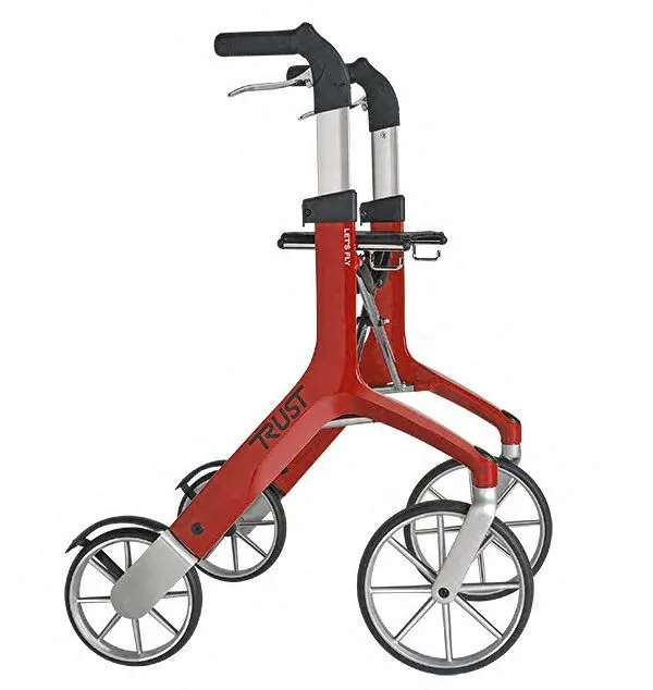 Let’s Fly utendørsrullator – Rød designrullator med komfort og klasse